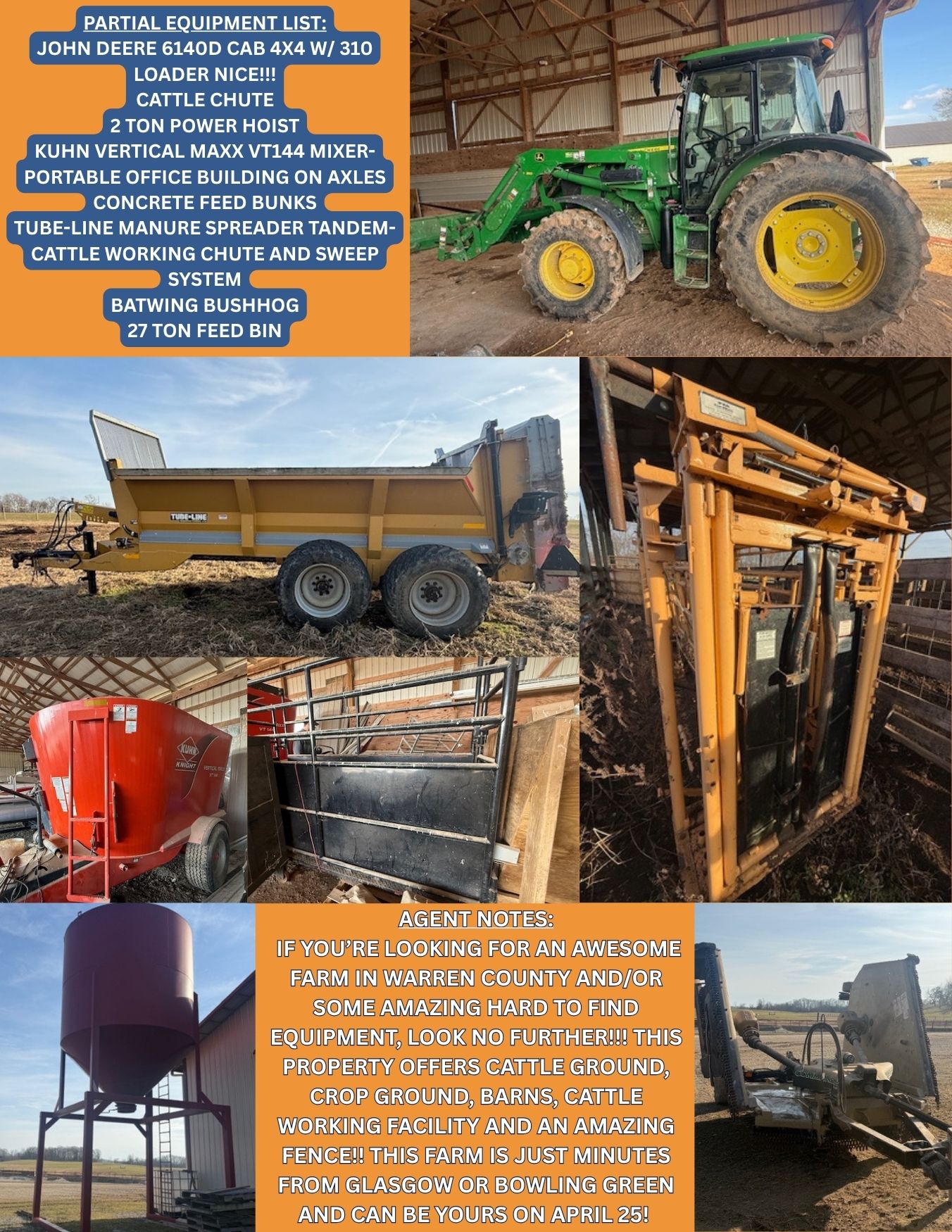 155+/- acres, cattle ground, crop ground, tractor, equipment!